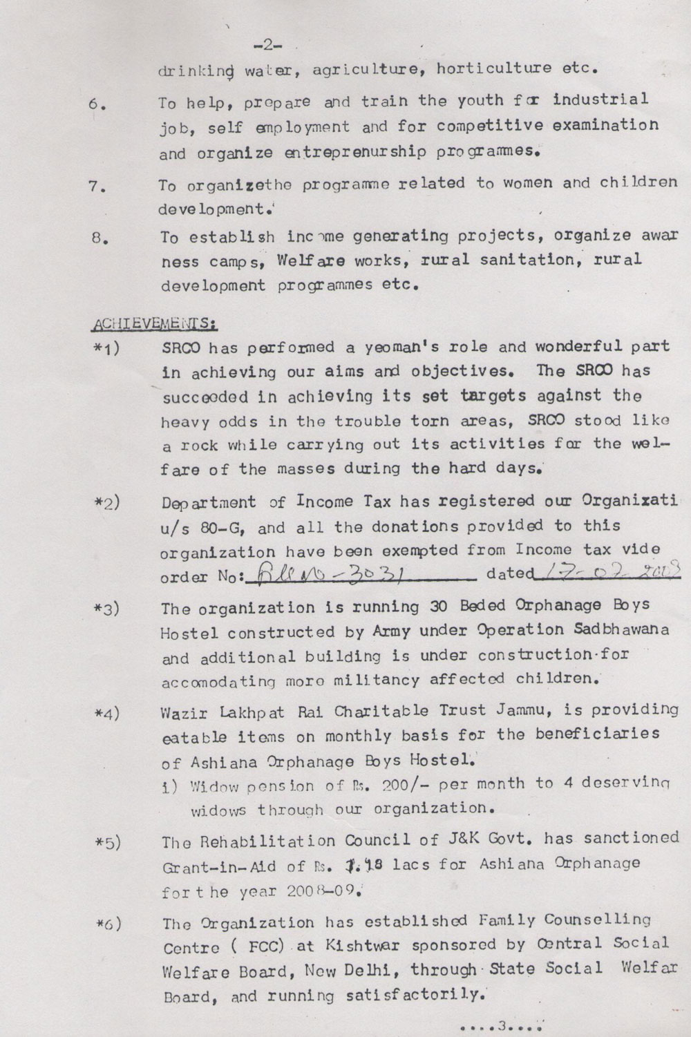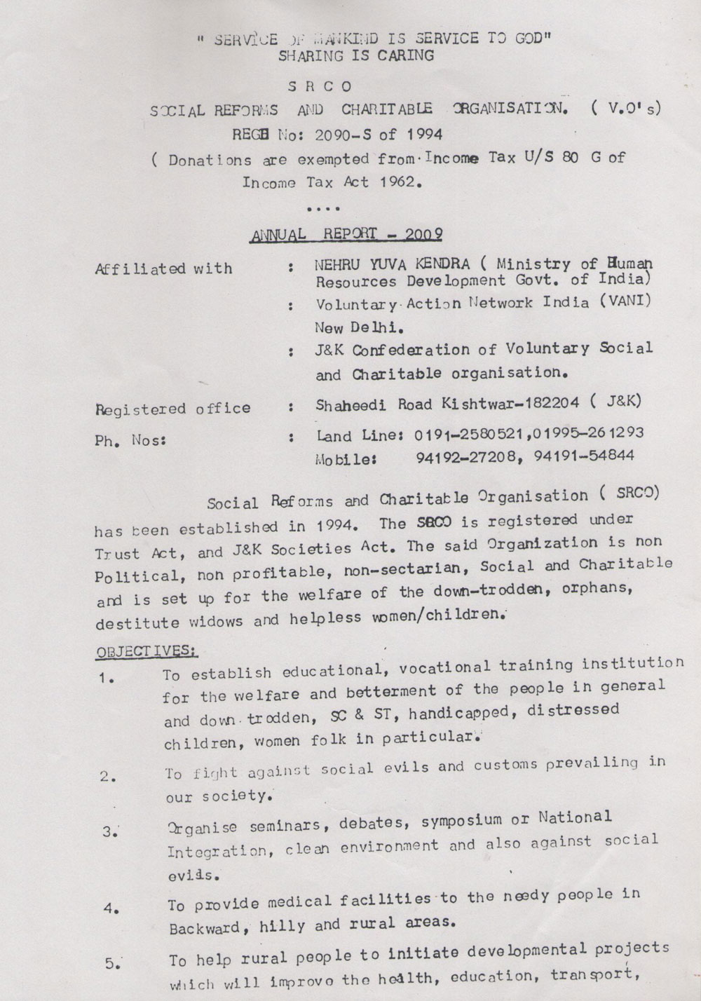 Annual Report of Social Reforms and Charitable Organisation (Kishtwar)